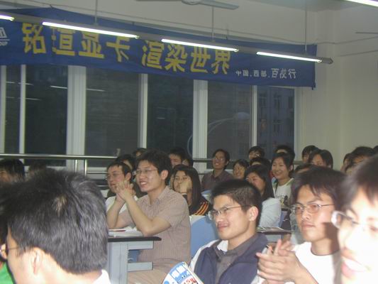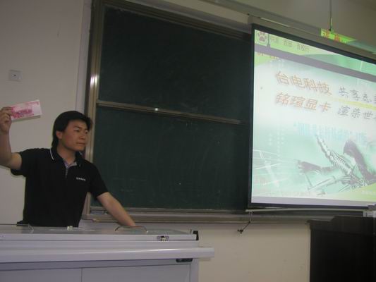 從這站可以看到,同樣是我們的臺(tái)電產(chǎn)品深受學(xué)生的歡迎,也有銷售了幾臺(tái)高端MP3機(jī)型。最為熱鬧的是晚上的講坐,參于人員特別多,多媒體教室坐的爆滿,并有很多臺(tái)電前客戶和學(xué)生FANS 同臺(tái)交流,這站是氣最旺的一站。