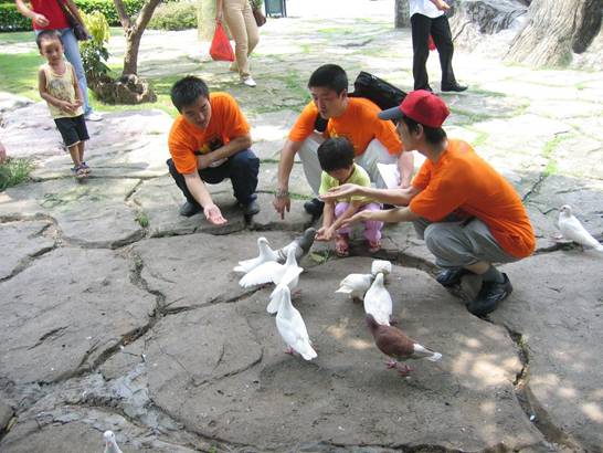 歡樂(lè)谷里那么多刺激的項(xiàng)目,小朋友自然玩不了,只能喂喂白鴿啦