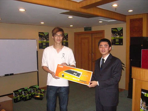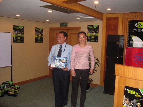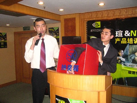 大獎?wù)Q生,銘瑄6系顯卡!趙先生和侯先生分別頒獎,經(jīng)銷商們都興奮不已。