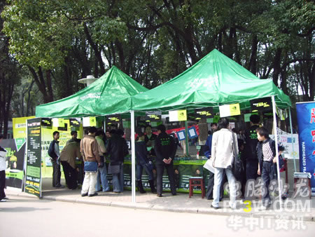 產(chǎn)品展示及現(xiàn)場演示區(qū)設(shè)在華中師范大學(xué)主校區(qū)學(xué)子餐廳門前。整個演示區(qū)基本上沿襲了上一站武漢大學(xué)站的風(fēng)格,分為產(chǎn)品展示區(qū)及現(xiàn)場演示區(qū)。
