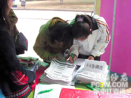在產(chǎn)品演示區(qū)的另一端,路過的同學(xué)們紛紛過來填寫問卷調(diào)查,從自己的感受出發(fā),表達(dá)自己對顯卡的具體想法和個人選擇。