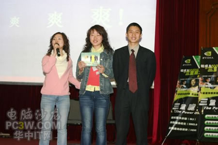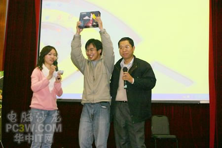 又是一位幸運(yùn)的MM被抽中并上臺領(lǐng)獎,引起臺下男生的一片嘆息聲,難道華師真的是傳說中的“陰盛陽衰”?大獎難道都要被MM包攬?