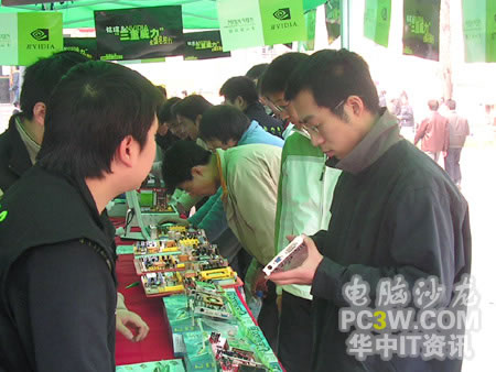 產品展示區的各款顯示卡吸引了不少過路同學的眼球,紛紛過來仔細觀看,并不時向工作人員咨詢產品細節。