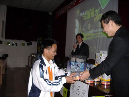 本次活動包括現(xiàn)場抽獎環(huán)節(jié),獎品包括CD刻錄光盤、鍵盤鼠標(biāo)套裝、攝像頭和高性能Geforce6顯卡等等,非常豐富。