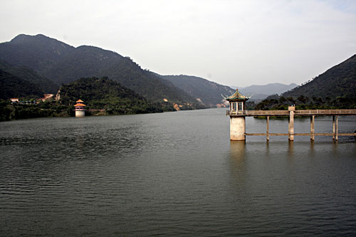 在平穩(wěn)的行駛了一個(gè)半小時(shí)之后,大家來(lái)到了期待已久的風(fēng)景區(qū)。一下汽車(chē),清新的空氣便撲面而來(lái),對(duì)于在城市里住久了的人們來(lái)說(shuō),這是難得的享受。同事們興奮的一起涌上庫(kù)區(qū)大壩,湖水清澈,山林密茂的九龍湖便呈現(xiàn)在眼前。