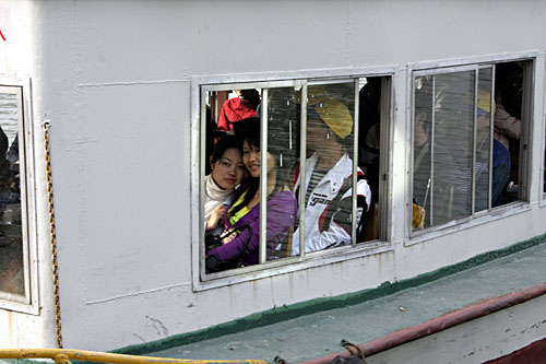 大家登上大船排排做好,快樂(lè)的心情溢于言表