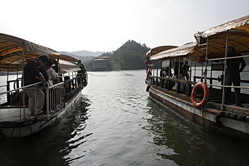 玩完競(jìng)渡項(xiàng)目后,已經(jīng)是下午三點(diǎn)多了,太陽(yáng)也懶洋洋的散發(fā)出溫暖的光芒。經(jīng)過(guò)了這么多活動(dòng),大家體力消耗也是蠻大的,于是我們登上了游船,啟程離開(kāi)美麗的九龍湖。