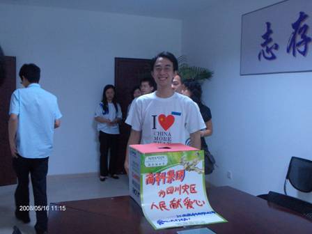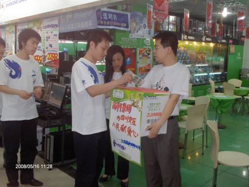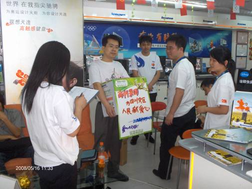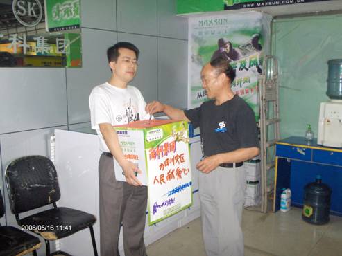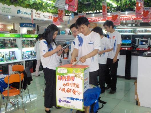 1、一方有難八方支援一直是中華民族優(yōu)良的傳統(tǒng),天災無情人有情,在我們的兄弟姐妹正在受到災難折磨的時候,作為一個有良知的中國人,我們是不是更應該拿出自己的一片愛心,有人的出人,有力的出力,用我們的愛心來支援一下災區(qū)的同胞們?江西商科電腦公司吳暉經(jīng)理率先向災區(qū)進行了愛心捐款。