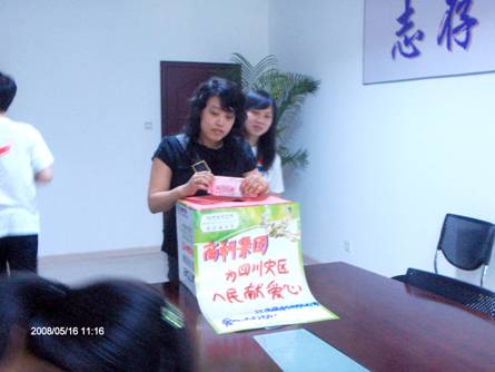 2008年5月12日下午2點58分,我國四川汶川地區(qū)發(fā)生了7.8級大地震.目前已經(jīng)造成造成多人死亡,現(xiàn)在有更多的人無家可歸。面對四川的百年不遇的災情,商科人的心情萬分焦急和關注中!雖然我們力量十分有限,但是我們完全可以用自己能做的方式去盡一點力,表達一份愛心!在此,我們?nèi)w員工自發(fā)的進行了向災區(qū)獻愛心募捐活動。