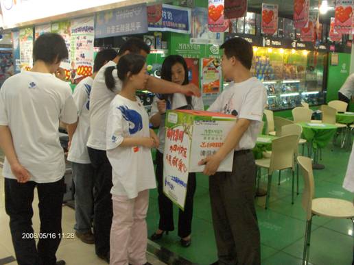 3、公司愛心募捐進行到了第二階段,,因為我們的心在痛,我們都在行動!南廳DIY門市部的員工在募捐現(xiàn)場。