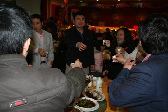 晚宴期間,領導向大家祝酒。