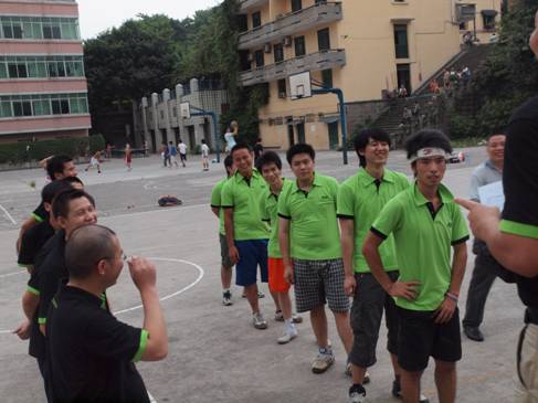 比賽前,雙方各派出6名隊(duì)員,分為綠隊(duì)和黑隊(duì),王榮給大家講解比賽規(guī)則。