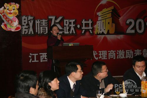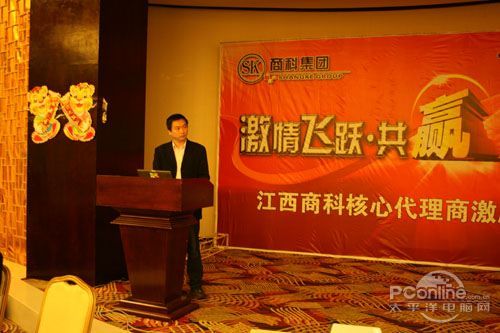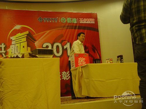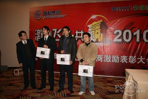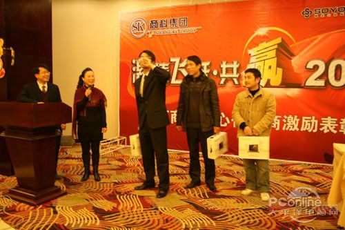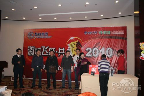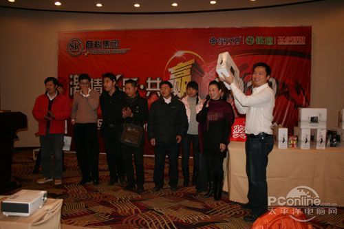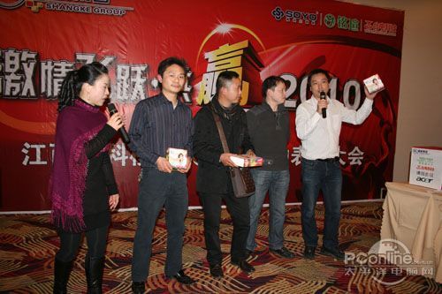 本次會(huì)議有眾多經(jīng)銷商應(yīng)邀赴會(huì),更有來自NVIDIA和intel的嘉賓光臨現(xiàn)場(chǎng),其中包括來自NVIDIA公司的彭華先生,以及INTEL公司的吳偉先生。而我們太平洋電腦網(wǎng)江西站作為到會(huì)的媒體代表,也被作為嘉賓介紹給大家。與上面的幾位重量級(jí)人物一起被主持人隆重介紹給廣大商家,筆者實(shí)在是感到有點(diǎn)汗顏!會(huì)議首先由NVIDIA公司的彭華先生為大家介紹阿凡達(dá)與NVIDIA的淵源(原來《阿凡達(dá)》出色的CG效果可是由NVIDIA的顯卡打造而成的)以及NVIDIA公司的新技術(shù)與政策。然后再由江西商科總經(jīng)理吳暉先生講話,再后就是對(duì)2009年度成績突出的商科合作伙伴進(jìn)行表彰頒獎(jiǎng)(獎(jiǎng)品非常豐厚哦,竟然是臺(tái)電上網(wǎng)本)。最后就是激動(dòng)全場(chǎng)的抽獎(jiǎng)活動(dòng)了!