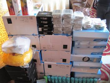 晚會(huì)游戲紀(jì)念品以及抽獎(jiǎng)的部分禮品,除了這些禮品外還有現(xiàn)金獎(jiǎng),手機(jī)充值卡等等。