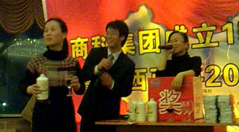 中獎(jiǎng)的同事要想拿走獎(jiǎng)品得先把龔姐手中的酒喝了!