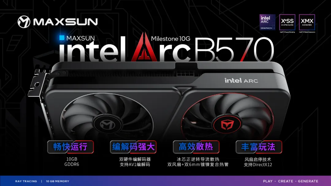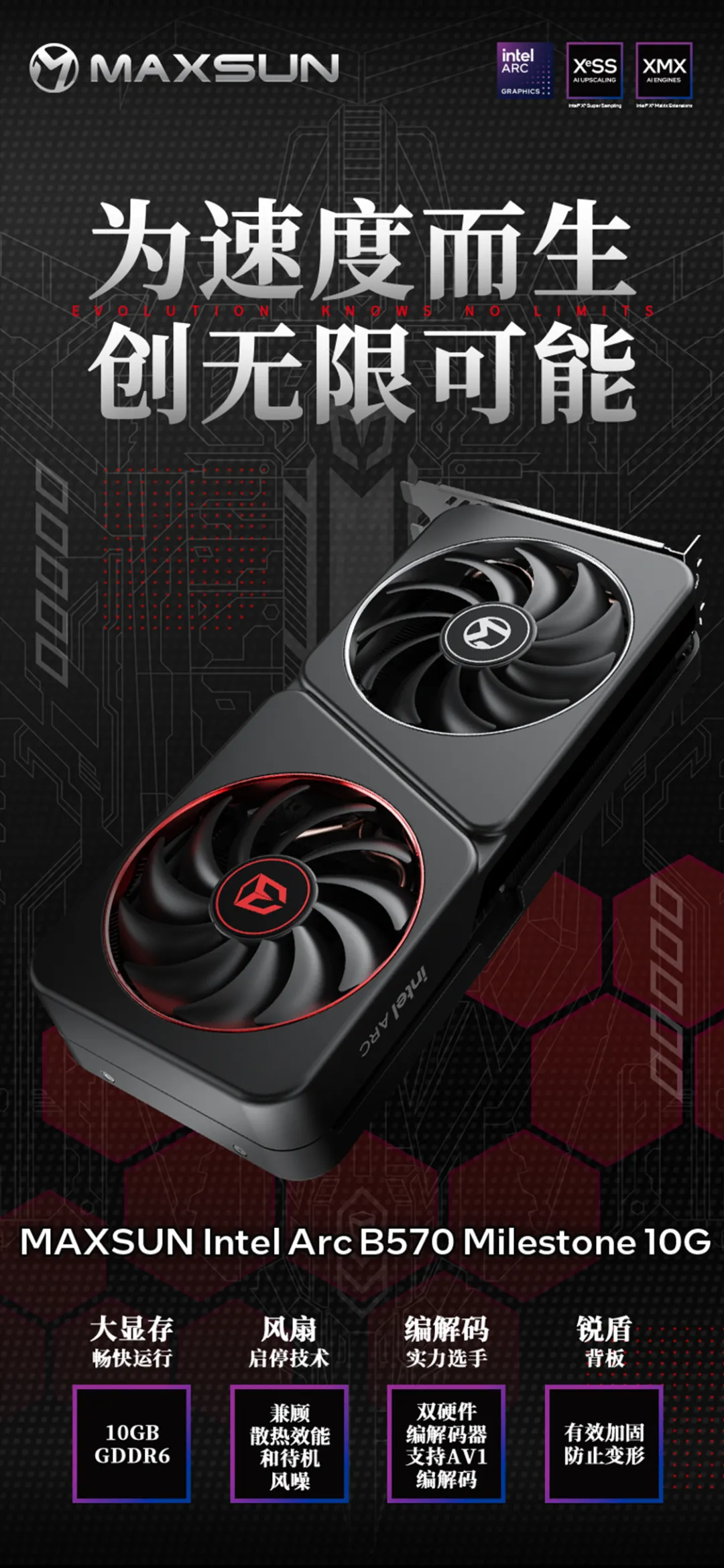 自銘瑄推出Intel Arc B580系列顯卡以來,憑著卓越的性能與品質(zhì),收獲不少用戶好評(píng),成為不少游戲玩家和內(nèi)容創(chuàng)作者的熱門之選。今天,銘瑄正式推出全新MAXSUN Intel Arc B570 Milestone 10G顯卡,為廣大用戶提供更多元、具備性價(jià)比優(yōu)勢(shì)的選擇。