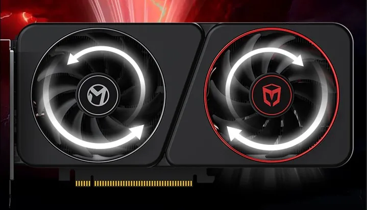 MAXSUN Intel Arc B570 Milestone 10G采用雙風(fēng)扇正逆轉(zhuǎn)導(dǎo)流散熱設(shè)計(jì),9CM FROST風(fēng)扇搭配11幅密集扇葉,風(fēng)扇旋轉(zhuǎn)方向不同,減少繞流,增加進(jìn)風(fēng)量,顯著提升散熱效能,讓顯卡在高負(fù)載下也時(shí)刻冷靜。在10分鐘烤機(jī)實(shí)測(cè)中,MAXSUN Intel Arc B570 Milestone 10G溫度低至65度。(*測(cè)試數(shù)據(jù)來源于銘瑄實(shí)驗(yàn)室,基于此配置進(jìn)行測(cè)試:Motherboard-MS-Terminator B760M D4 ICE;CPU-英特爾®酷睿™i7-13700K處理器;RAM-DDR4 4000 16-16-16-36,實(shí)際性能會(huì)因硬件配置、軟件環(huán)境等多方面差異而存在變化)